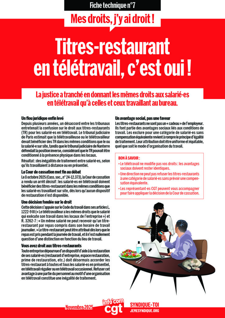 Depuis plusieurs années, un désaccord entre les tribunaux entretenait la confusion sur le droit aux titres-restaurant (TR) pour les salarié·es en télétravail. Le tribunal judiciaire de Paris estimait que la télétravailleuse ou le télétravailleur devait bénéficier des TR dans les mêmes conditions que le ou la salarié·e sur site, tandis que le tribunal judiciaire de Nanterre défendait la position inverse, considérant que le TR pouvait être conditionné à la présence physique dans les locaux.